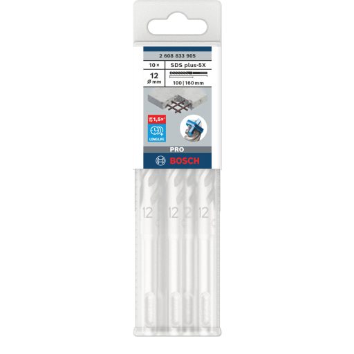 BOSCH SDS-PLUS_5X_PRO 12,0x 165/100mm - VASBETONHOZ IS! (10db/doboz!, 1.5x több élettartam!)