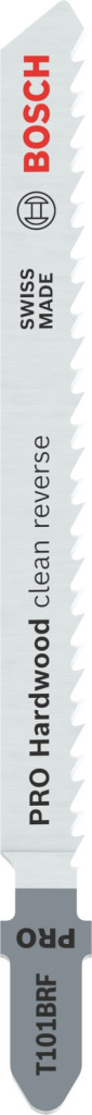 A legtöbb szúrófűrészlap felfelé vág, a hosszú élettartamú PRO Hardwood clean reverse T101BRF pedig egyszerű megoldást kínál azon szakembereknek, akik szeretnék látni a munkadarab tetejét, miközben a szükséges tiszta vágásokat végzik: a fűrészlap fordított fogkialakítással rendelkezik, így lefelé haladva vág.