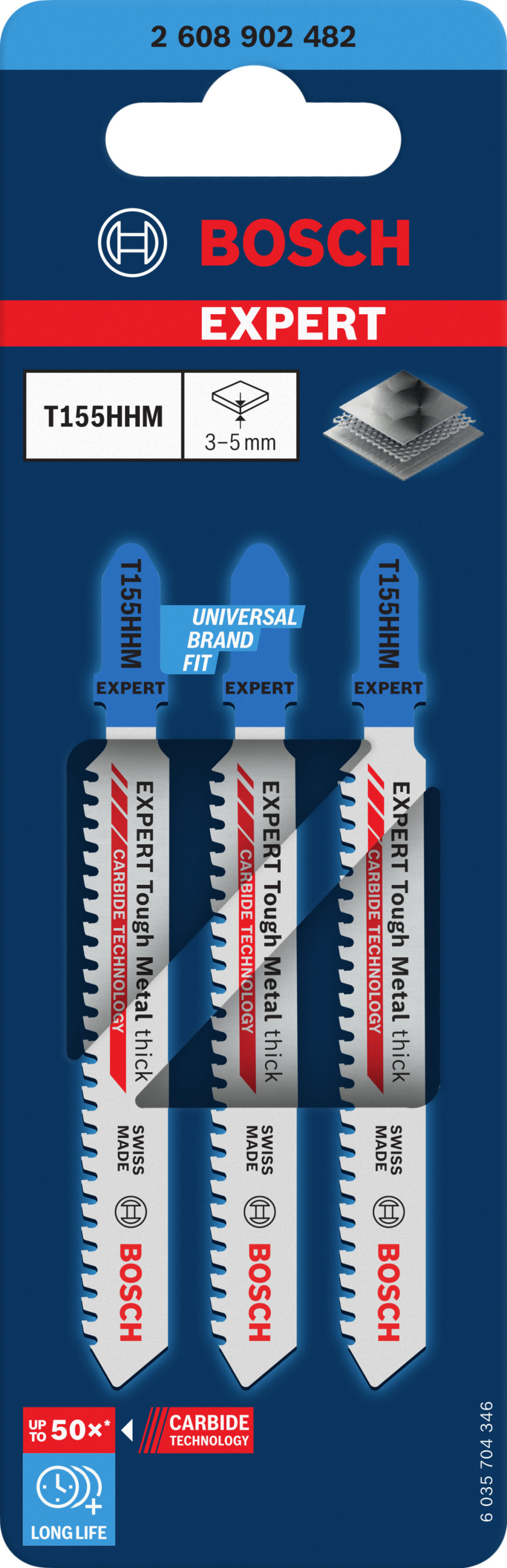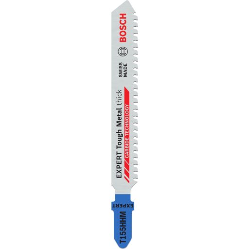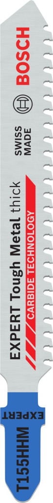 A Bosch EXPERT Tough Metal szúrófűrészlap 3 változatban kapható: a nagyon finom fogosztású T118AHM nagyon vékony lemezek vágására ideális, a közepesen finom fogakkal rendelkező T118EHM a legnagyobb szilárdságú acél vékony lemezek vagy közepes és vékony falú csövek vágására készült, a T155HHM nagy fogosztással rendelkezik, így akár 5 mm vastag lemezek is vághatók vele.