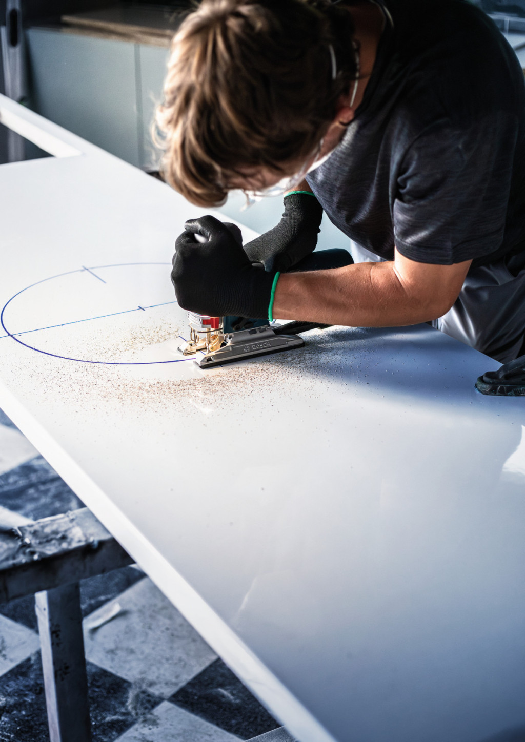 A szúrófűrésszel készített vágás tiszta oldalának biztosítása a munkaanyag látható részén mindig is művészet volt az ácsok és asztalosok körében. Néha meg lehet fordítani a munkadarabot, máskor magát a szúrófűrészt lehet fejjel lefelé tartani. Vagy használhatod az EXPERT Hardwood 2-side clean szúrófűrészlapot is, amely ellentétes fogazatának köszönhetően tökéletesen szakadásmentes vágást biztosít mindkét oldalon.