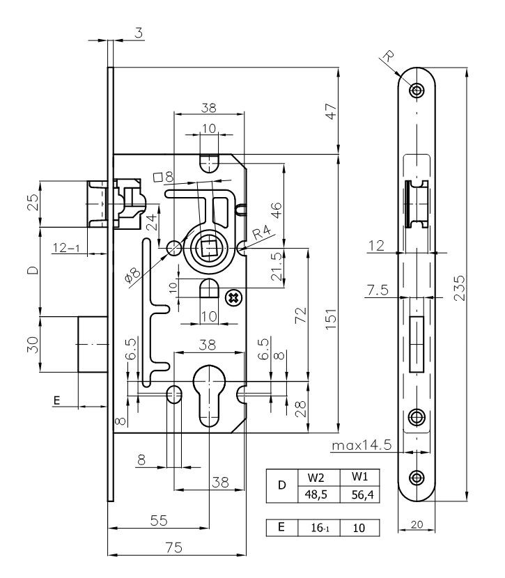 Euro-Elzett N110 72/55 csapdás cilinderlyukas bevésőzár balos