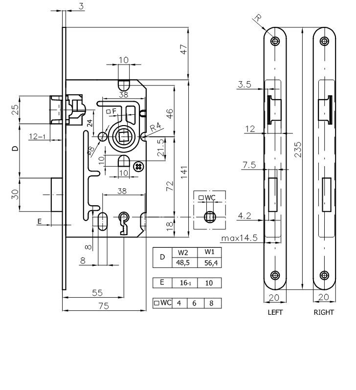 Euro-Elzett N110 72/55 csapdás kulcsos bevésőzár jobbos