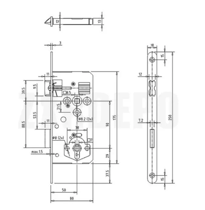 45/90 osztású zár