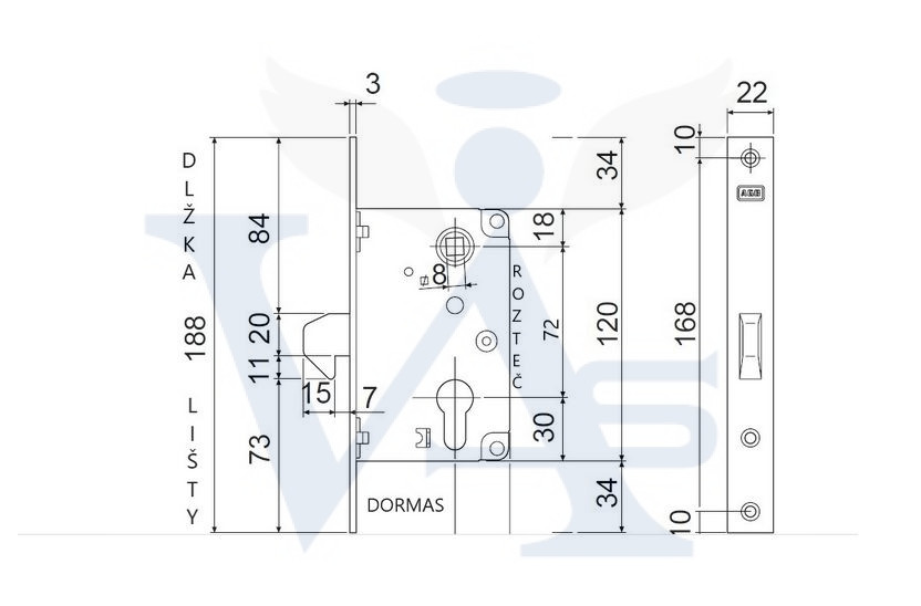 Bevésőzár kampós TOLÓKAPU AGB 910/40mm - Csapdás