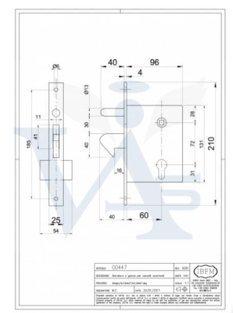 Bevésőzár kampós TOLÓKAPU IBFM art.447 100/72mm - Csapdás + vezető csap ! Betéttel !