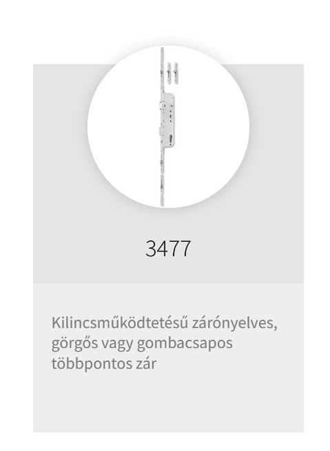 Kilincsműködtetésű többpontos bevésőzár. Zárónyelves, görgős vagy gombacsapos kivitel. Kültéri ajtókhoz ajánlott. Egycsukással zárás. Univerzális csapdájú, a csapda átfordítható az ajtó nyitásirányának megfelelően.