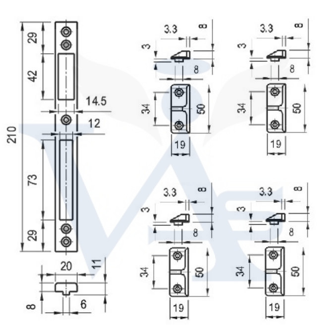 Bevésőzár záróelem N°3477/MS+4 ellendarab - N°3477/MS + nútos ellendarab