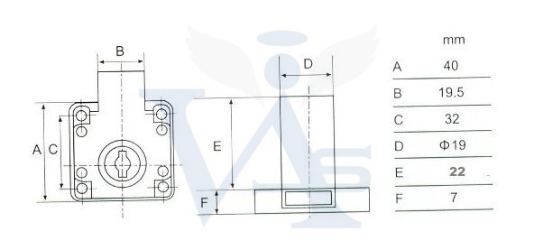 Bútorzár rászegző Cilinderes 22mm FL138-22 - ANBO, króm (55-10, fém kulcsfej)