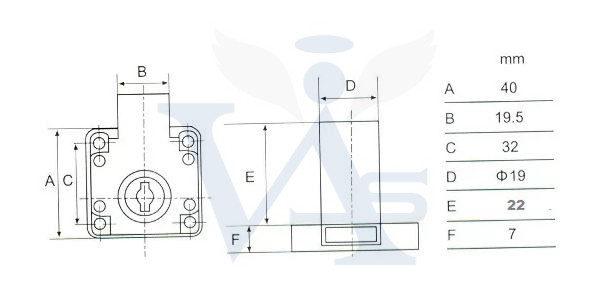 Bútorzár rászegző Cilinderes 22mm FL138-22 - ANBO, króm (műanyag kulcsfej)