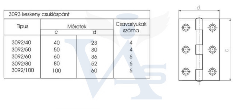 Csuklóspánt 3092/ 80x52mm keskeny SÁRGA - horganyzott