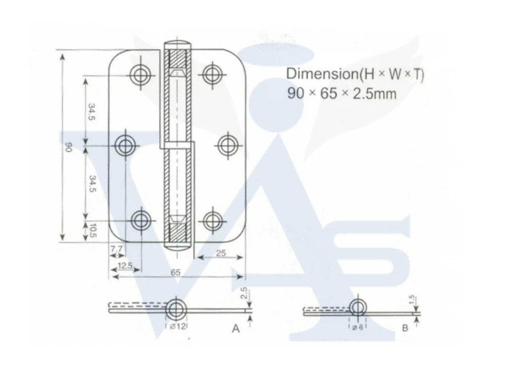 Csuklóspánt-A2 ANBO / 90mm INOX - 90x 65x2,5mm SH3008 (BALOS!)