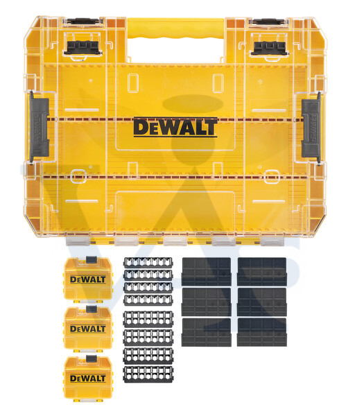 DEWALT Bitfej tárolószertiment doboz DT70804-QZ - TOUGH CASE+ (Nagy méretű + kis tartozékos tárolók)