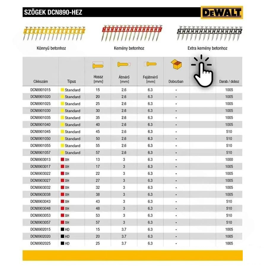 - Kompatibilis a DCN890 akkumulátoros szegezővel és a DGN845 gázos szegezővel