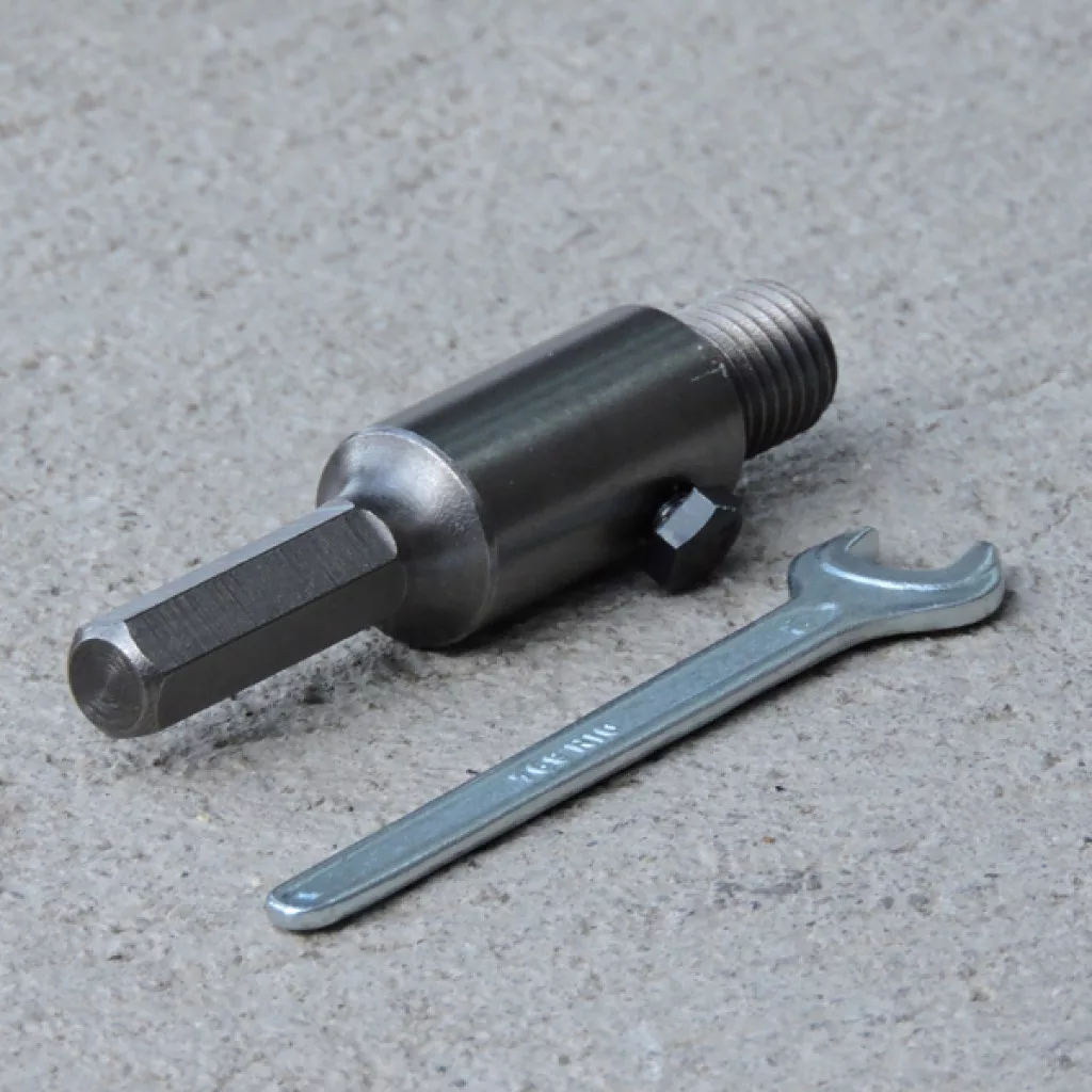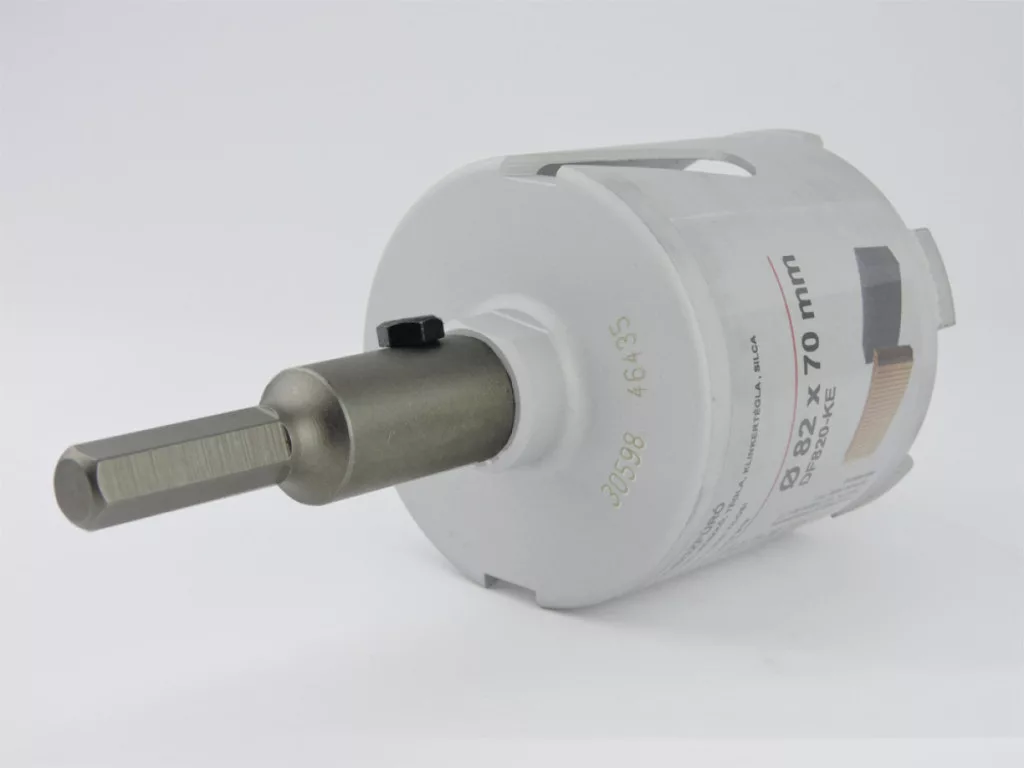 A felfogószár a DIATECH termékcsalád gyémánt dobozmaróihoz csatlakoztatható (M16), melyet hatszögletű befogószárral láttak el.