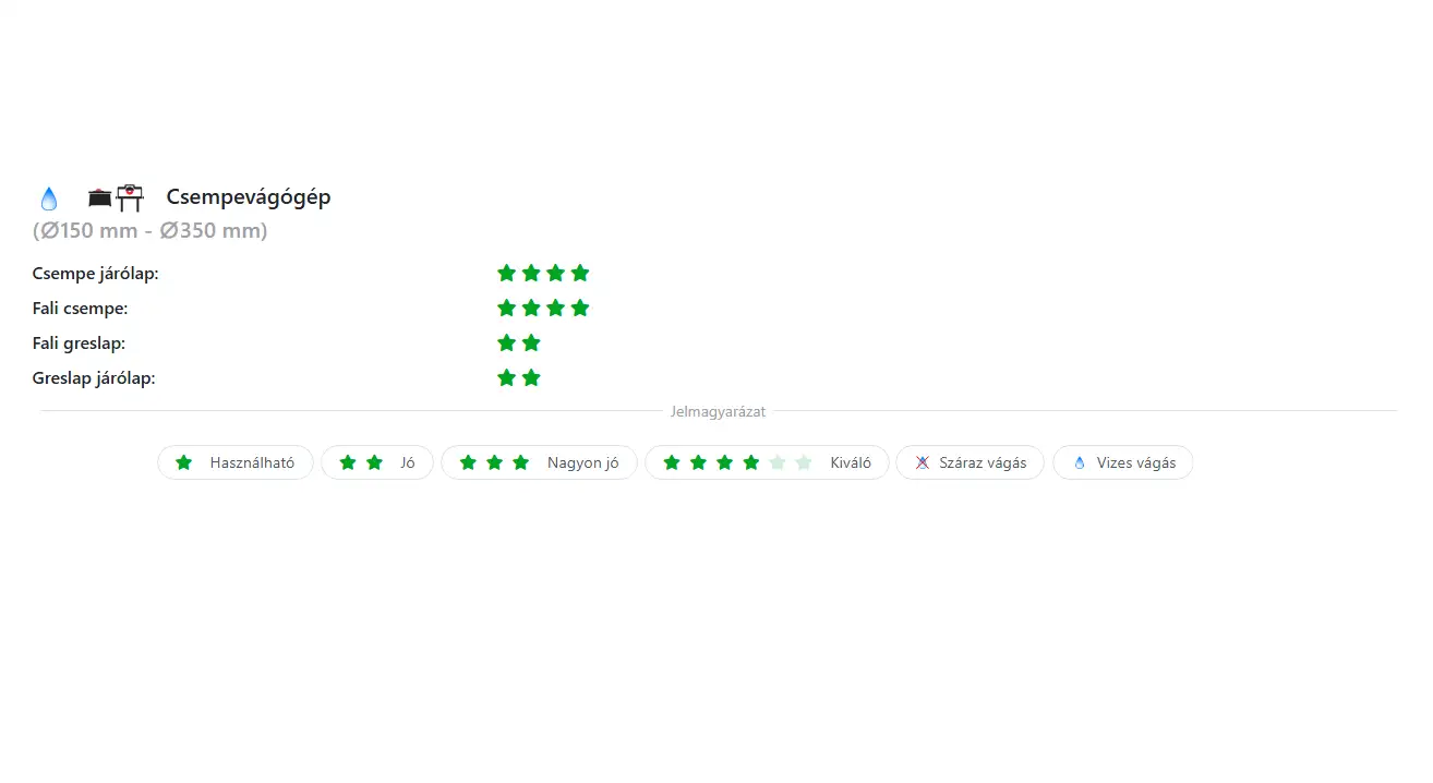Széles méretválasztékban, kerámia, csempe vágásához ajánljuk Maxon csempe CLASSIC folyamatos élű gyémánt vágótárcsánkat, mely 115 és 125 mm-es átmérőben szárazon is használható. Ettől nagyobb méret esetén a tárcsa csak vizes asztali gépen használható.