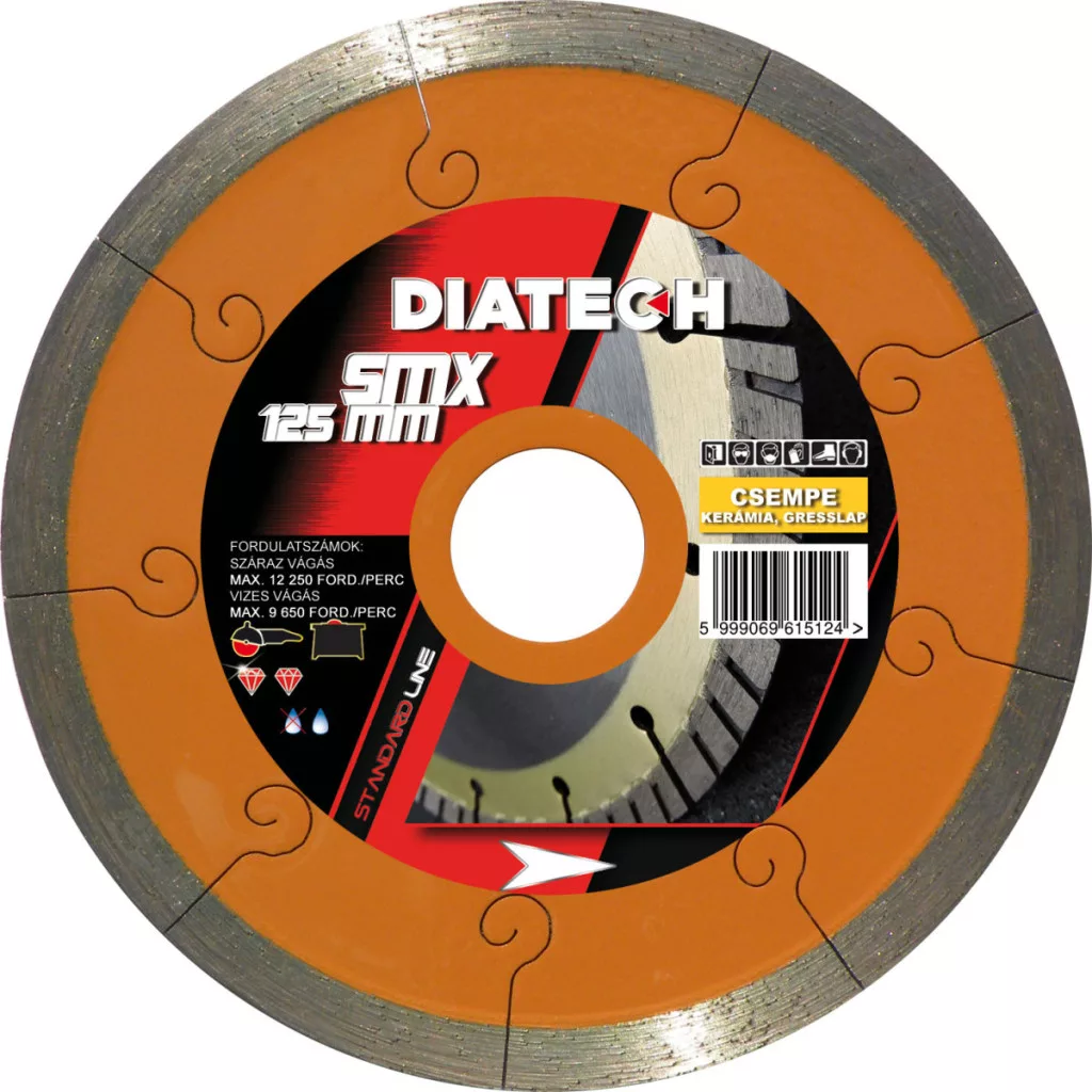 DIATECH gyémánt vágótárcsa SMX 125x22,2x 7,5mm (Főleg porcelán, kerámia, greslap vágásához)