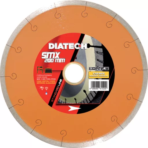 Az SMX gyémánt vágótárcsákat speciálisan fal- és padlóburkoló lapok (porcelán, kerámia, greslap) vágására fejlesztettük ki. A tárcsa folyamatos szegmense tiszta vágási élt biztosít, nem „csipkéz”, nem vág „szakítva”, ezért tökéletes kerámiák esztétikus, igényes vágására. A széles méretválaszték és a 7,5 mm-es szegmensmagasság tovább segíti a felhasználás gazdaságosságát. Az SMX 115 és 125 mm-es átmérőben szárazon is megfelelő teljesítményt nyújt. Ettől nagyobb méret esetén a tárcsa csak vizes csempevágó- vagy asztali gépen használható.