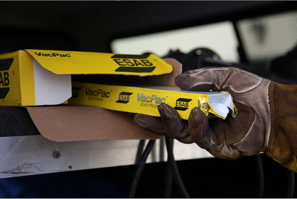 Az ESAB VacPac™ csomagolása hermetikusan lezárt és vákuumcsomagolt, hogy megvédje a burkolt elektródákat a nedvesség felvételétől és a levegőből való újra felszívódástól. Az ESAB összes rozsdamentes acél elektródája VacPac csomagolásban kerül forgalomba, 0,7 kg (1,5 lb) és 2 kg (4,4 lb) közötti tömegben, 3-6 darabos kartondobozokban.