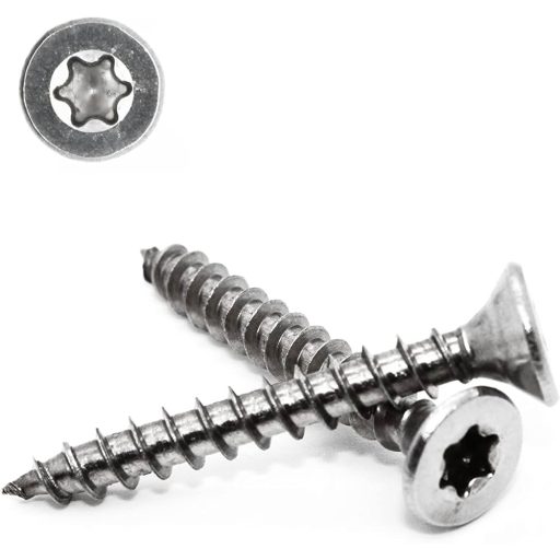 - Fej kialakítás: TORX (6-ág) meghajtású faforgácslap csavar előnye, hogy a nyílásban a behajtóhegy nagy felületen érintkezik a csavarral, ezáltal minimalizálva a bithegy kiugrását és a csavarfej rongálódását még hosszú csavarok esetében is.