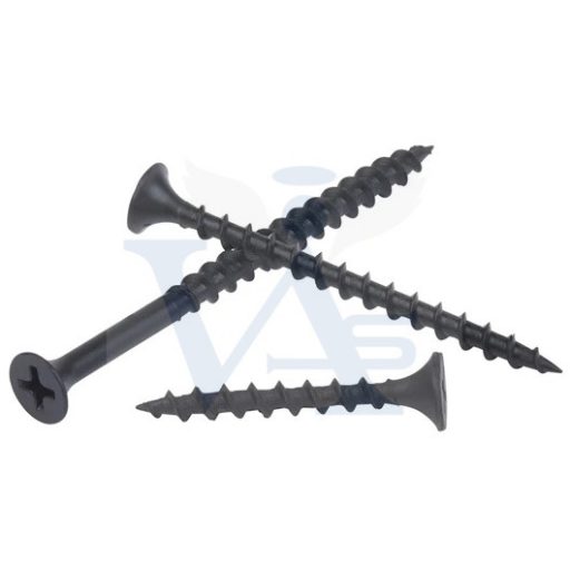 Jellemzők – Ritka menetemelkedésű foszfátozott süllyesztett fejű gipszkartoncsavar: