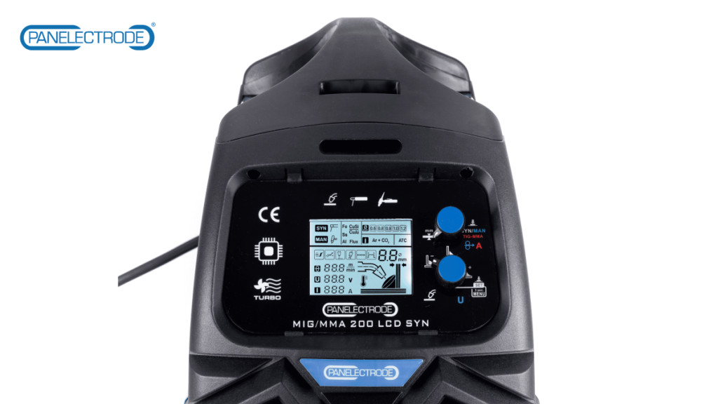 Rövid leírás: A Panelectrode MIG/MAG 200 LCD SYN a piacon kapható egyik legjobb ár-érték arányú olyan professzionális 4 funkciós, szinergikus/manuális vezérlésű, LCD kijelzős hegesztő inverter, ami használható védőházas (MIG/MAG), MMA, porbeles NOGAS, valamint wolfram elektródás (TIG-LIFT) hegesztési munkálatokhoz is. A hegesztőgép huzaltekercs kapacitása: 0,45kg – 5kg