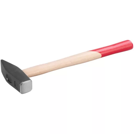 Univerzális használatra alkalmas lakatos kalapács fa nyéllel. A kalapácsfej kovácsolt acélból készül. DIN 1041.