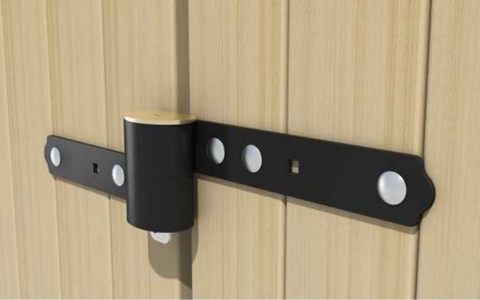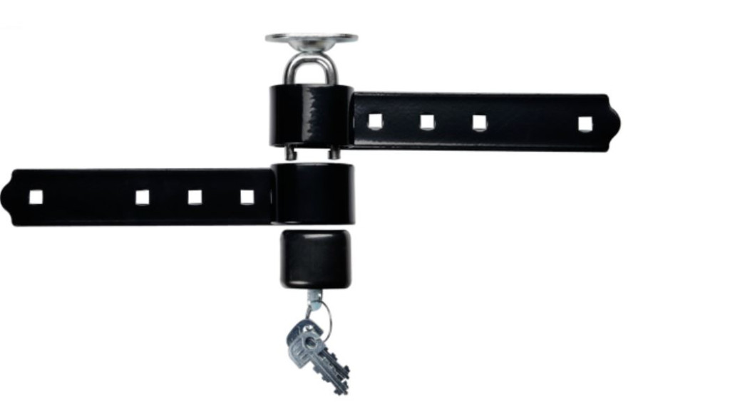 Speciális lakatpánt kétszárnyú kapuk zárására.