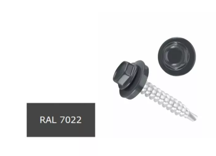 Lemezcsavar RAL 4,8x 19,0mm FŰZŐ EPDM RAL7022  - ÖNFÚRÓ-FÉM HATL. DIN7504/K (umbraszürke)
