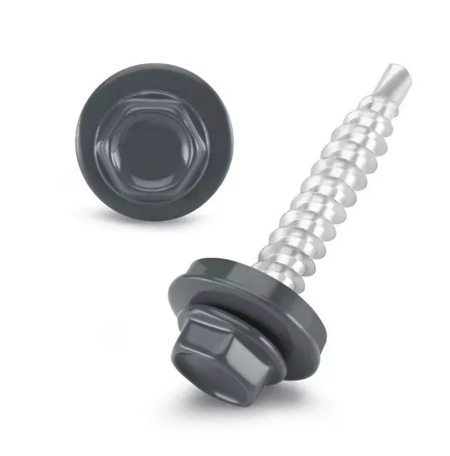 Lemezcsavar RAL 4,8x 35,0mm EPDM RAL7011 - ÖNFÚRÓ-FA HATL. DIN7504/K (vas szürke- redukált hegyű)