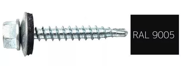 Lemezcsavar RAL 4,8x 35,0mm EPDM RAL9005  - ÖNFÚRÓ-FA HATL. DIN7504/K MÉLYFEKETE (redukált hegyű)