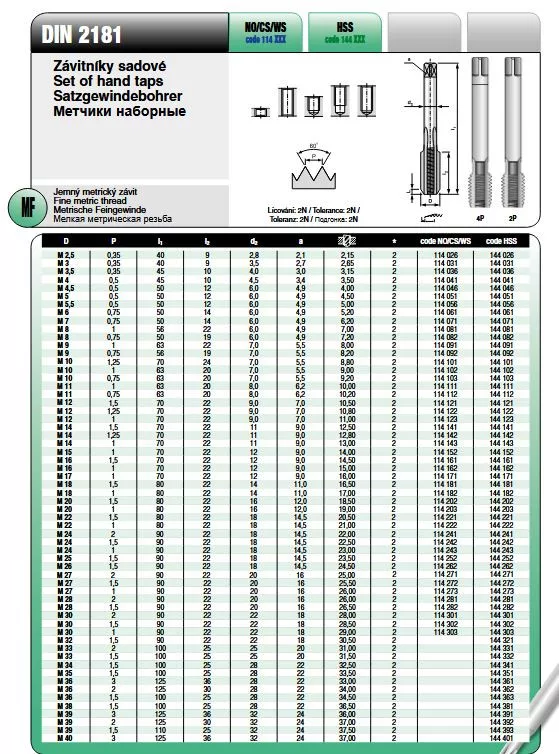 M.fúró KÉZI FINOM M-12,0x1,00 EH HssG - I.II.vágás IMPORT (Din:2181)