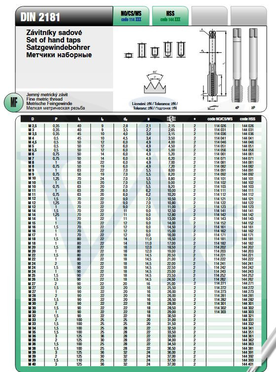 M.fúró KÉZI FINOM M-12,0x1,50 EH HssG - I.II.vágás Din:2181 IMPORT