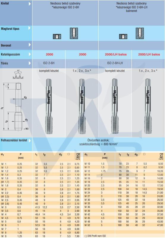 M.fúró KÉZI NORMÁL M- 5,0x0,80 EH HSS - NEOBOSS N°2000 I.II.III.vágás DIN352