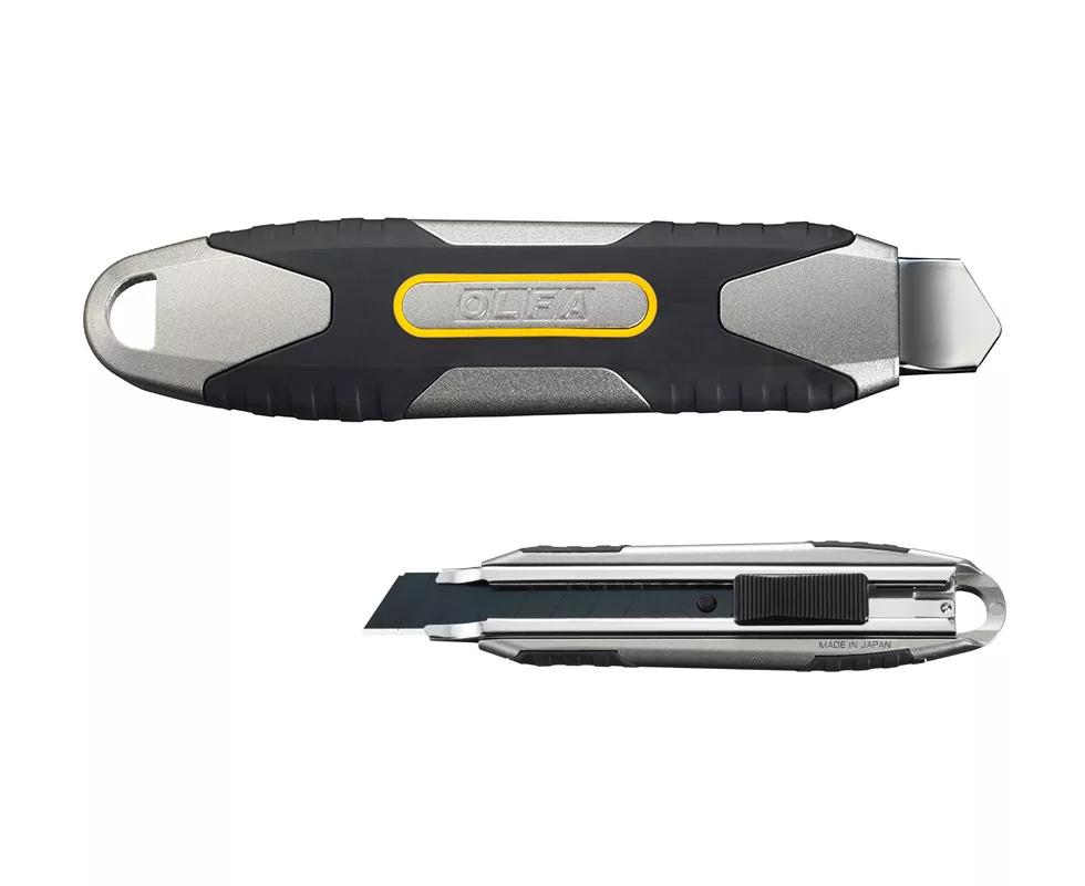 A test erősségét növeli a többrétegű, dupla fröccsöntött gumi markolat, az öntött alumínium test és a keményített, krómozott rozsdamentes acél pengetartó.
