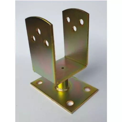 Oszloptartó Talpas Lefúrható 100mm - SÁRGA passzivált, FIX (100x100x 75mm)