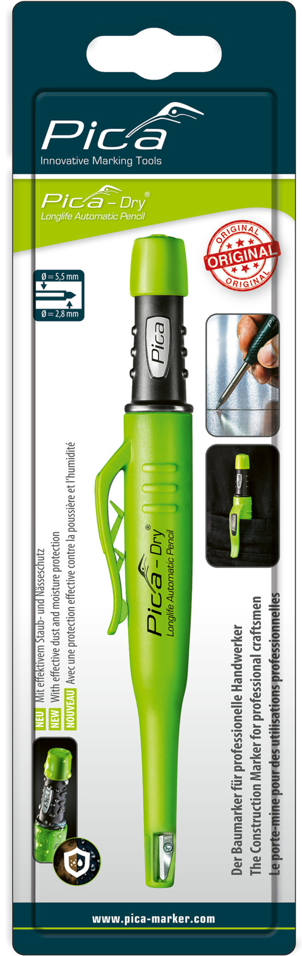 A Pica Dry professzionális építőipari jelölő, amely szinte minden anyagfelületen használható. Legyen az száraz vagy nedves, sima vagy érdes, poros vagy rozsdás. A széleskörű jelölő választéknak köszönhetően tökéletesen fel van szerelve bármilyen projekthez.