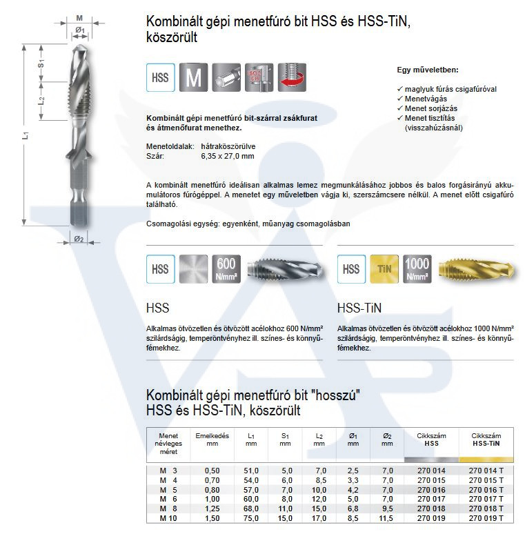 RUKO menetfúró 1/4-BIT, Hosszú M- 3,0x0,50 HSS - Kombinált (fúró és menetfúró egyben)
