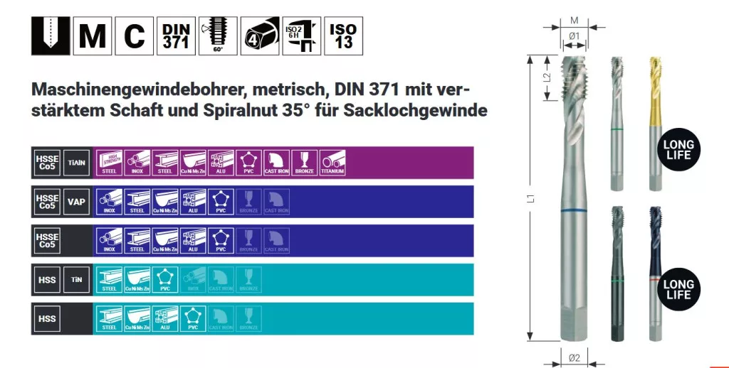 RUKO menetfúró GÉPI NORMÁL CSH M- 6,0x1,00 HSSG - TERRAX, CSAVART HORNYÚ GYORSACÉL 35° DIN371
