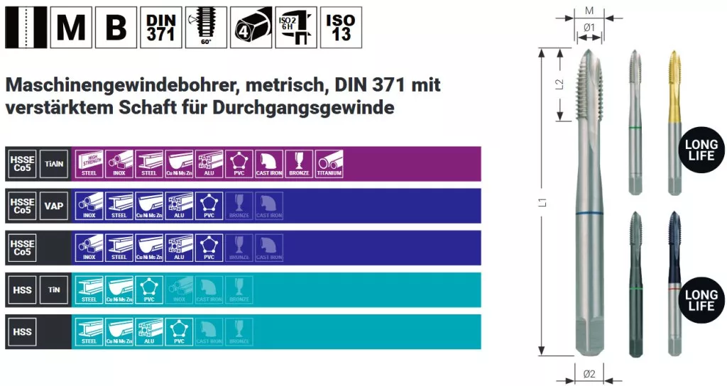 RUKO menetfúró GÉPI NORMÁL EH M- 2,0x0,40 HssE-Co5 - EGYENES HORNYÚ, Cobalt-5% (DIN371-Form-B)