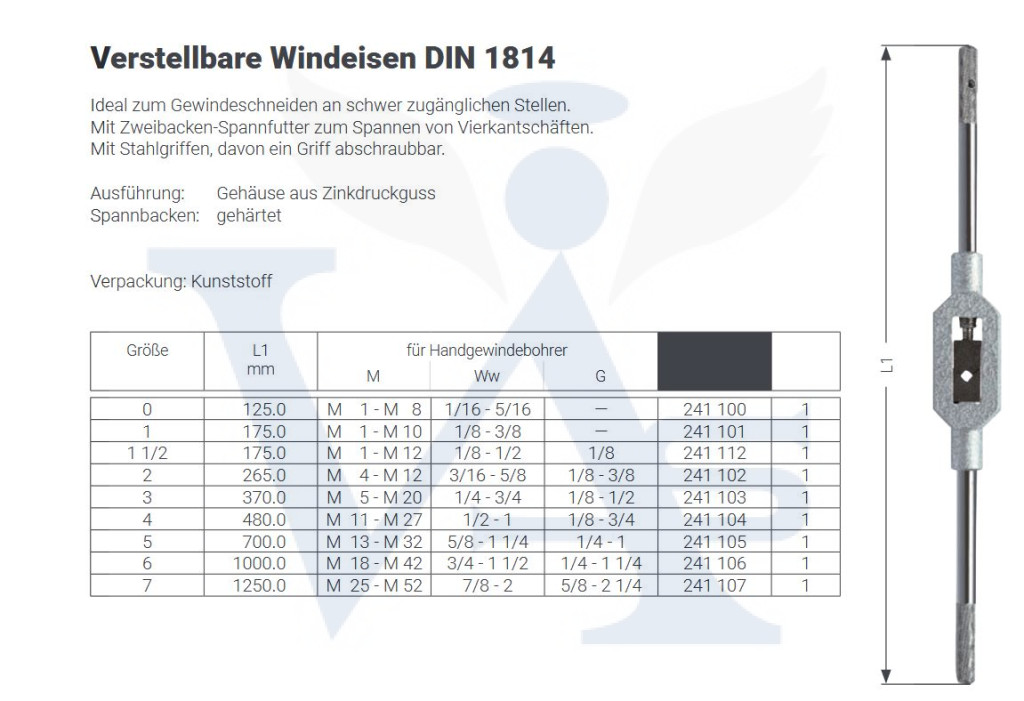 RUKO menetfúró-Hajtókar III.sz. M 5-M20mm DIN1814 - Cink-présöntvény