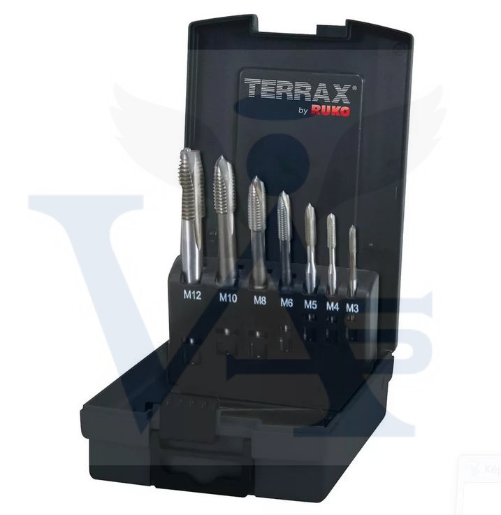 RUKO menetfúró készlet M3-12 - TERRAX, GÉPI, EGYENES HORNYÚ GYORSACÉL DIN371/376
