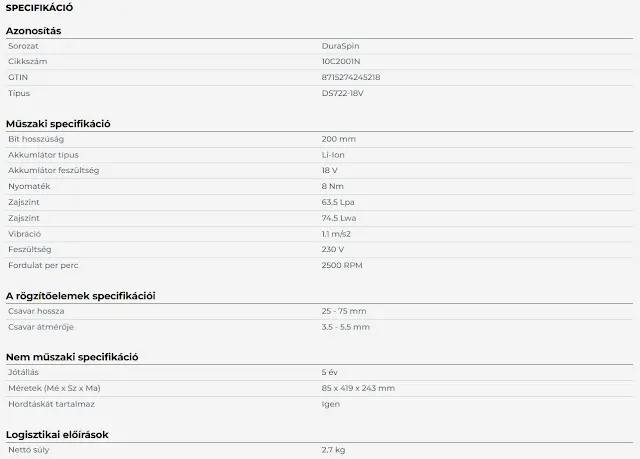 Ez a hatékony, kefe nélküli motorral hajtott, nagy nyomatékú, automatikus adagolású csavarbehajtó tartozéka két növelt élettartamú 3,0 Ah-s akkumulátor, egy állítható fordulatszám választó a nehézacélokhoz, és egy gyorskioldós adagolórendszer a szabadalmaztatott sarokrögzítési technológiánkkal. A DS722-18V visszatéréskor történő betöltés funkcióval is rendelkezik – a következő csavar a behajtóbithez igazodik a jobb látóhatóság és a könnyebb, pontosabb csavarelhelyezés érdekében