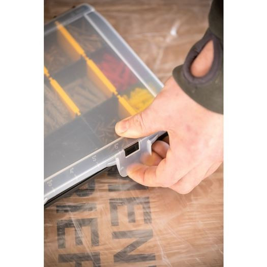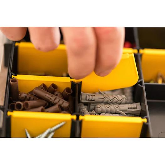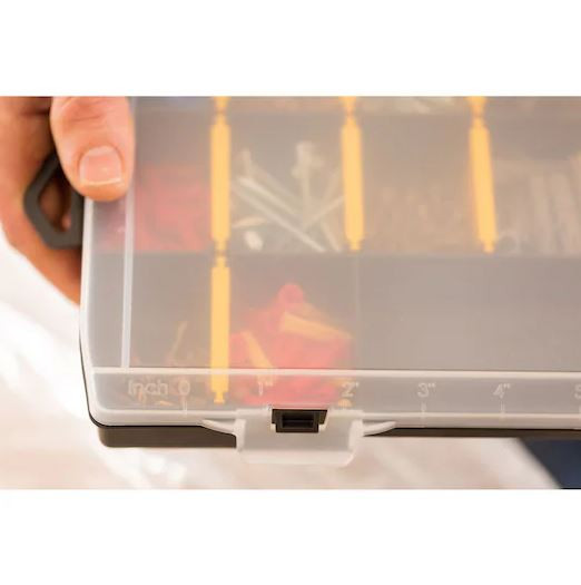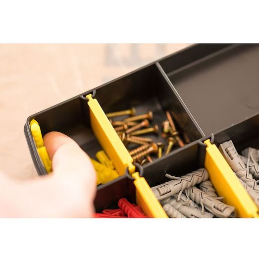 A STANLEY® 11"-os, 70 rekeszes szortimenter tökéletes apró alkatrészek és kiegészítők tárolására. A kivehető elválasztók lehetővé teszik az igényeknek megfelelő testreszabást, és mivel a rekeszek szélei lekerekítettek, könnyebb a kisebb rögzítőelemek és kiegészítők eltávolítása. Az átlátszó fedél lehetővé teszi a tartalom láthatóságát, a beépített vonalzó pedig hasznos a gyors helyszíni mérésekhez.
