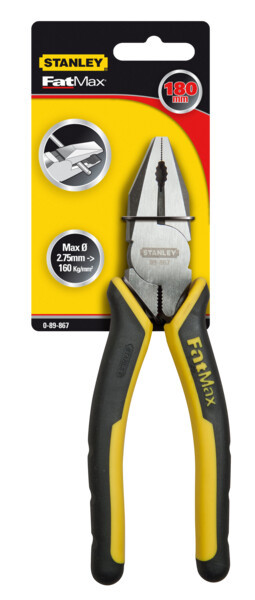 A STANLEY® FATMAX® 180 mm-es kombinált fogó kiváló kényelmet és irányíthatóságot biztosít, új, puha, két anyagból készült markolattal. A DIN, ISO és ANSI szabványoknak megfelelő fogó megbízhatóságot és biztonságot garantál professzionális alkalmazásokhoz. Hőkezelt, kovácsolt krómötvözetből készül, kivételes tartósságot és hosszú élettartamot biztosít. Az ergonómikus védőburkolatok megkönnyítik a hatékony húzási és nyomási műveleteket, míg a markolatok ellenállnak a leggyakoribb vegyi anyagoknak, biztosítva a hosszú élettartamot. A csiszolt fej professzionális megjelenést kölcsönöz ezeknek a kiváló minőségű fogóknak.