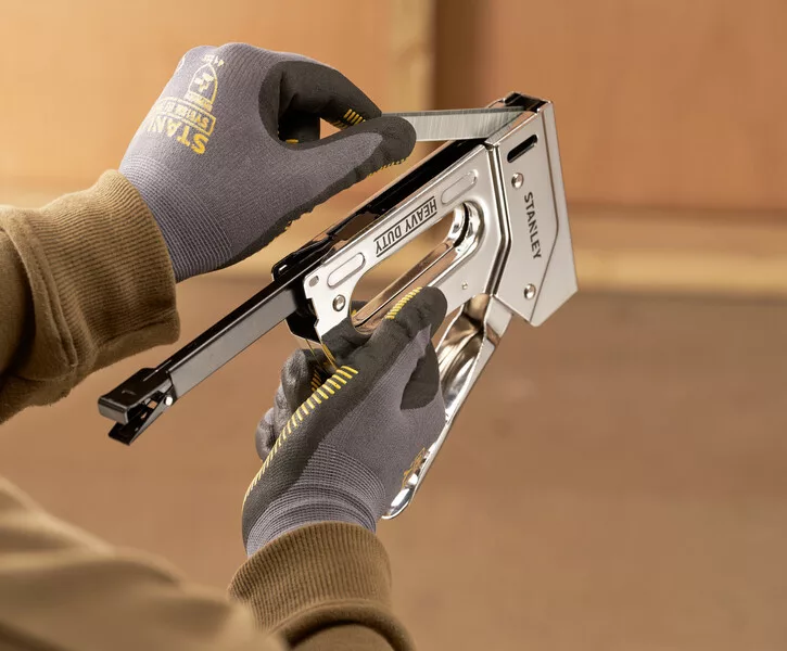A strapabíró tűzőgép tartós és megbízható. Krómozott, teljes acél szerkezete elég erős ahhoz, hogy kibírja a poros, piszkos munkaterületeket. Az alsó adagolócsatornának köszönhetően a tűzőkapcsok gyorsan betölthetők, a fogantyúzár pedig megkönnyíti a tárolást, így ez a szerszám elegendő erővel rendelkezik ahhoz, hogy nap mint nap, egész nap beverje a tűzőkapcsokat vastag, sűrű fába.