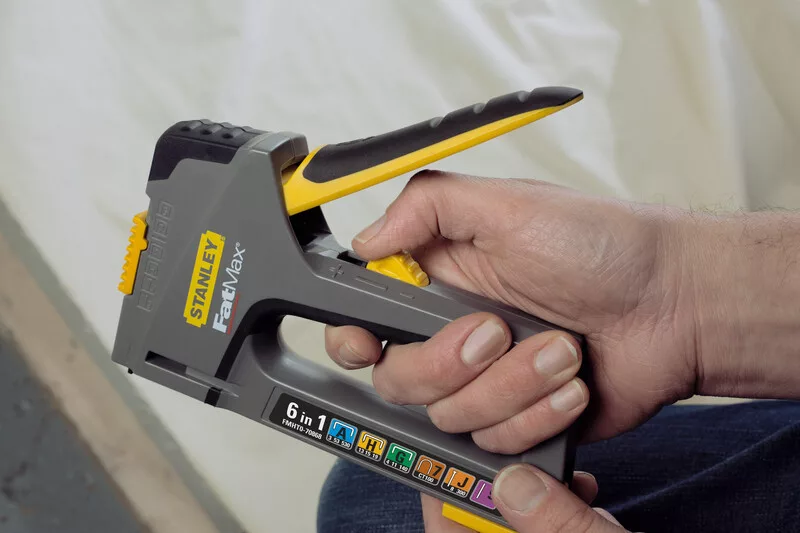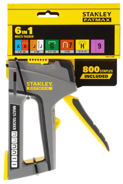 A STANLEY® FATMAX® 6 az 1-ben multifunkciós tűzőgép tűzőgép tűzőgépként egy multifunkcionális, sokoldalú professzionális tűzőgép, amely számos rögzítési és rögzítési feladatot ellát, beleértve a gipszkartont, gipszkartont, tetőfóliát, zsaluzatot, kerítést, lambériát és tetőlemezt.