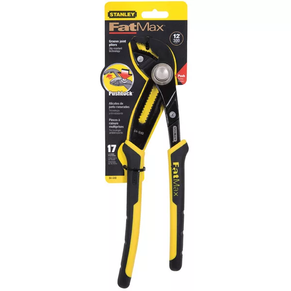 A STANLEY® FATMAX® 12"/300 mm-es hornyolt vízpumpafogók a lehető legtöbbet hozták ki a 17 állítható reteszelési pozícióval. Elegáns fekete króm bevonatával és kovácsolt konstrukciójával ezek a fogók kivételes szilárdságot és tartósságot kínálnak. A szabadalmaztatott PushLock™ beállító gomb egyszerű használatot és precíz beállításokat biztosít, míg az ergonomikus, kétkomponensű markolat kényelmes fogást és fokozott kontrollt biztosít. Az indukciós edzésű pofákkal készült fogók fokozott tartósságot és optimalizált pofageometriát biztosítanak a többféle megfogási alkalmazáshoz, biztosítva a kiváló teljesítményt és hozzáférhetőséget. Ezek a fogók megbízható és nélkülözhetetlen kiegészítői minden szerszámkészletnek.