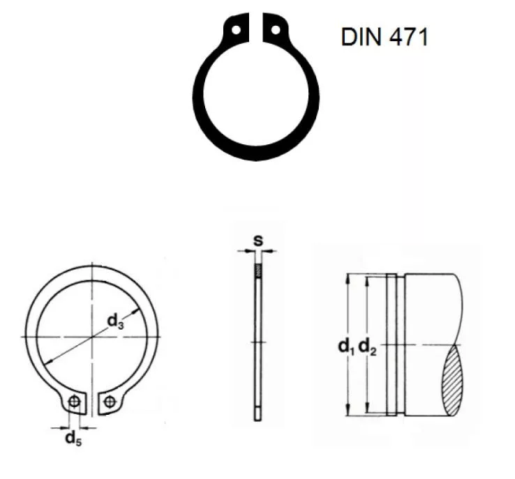 Ez a típusú rögzítőgyűrű a tengelyek rögzítésére szolgál. A rögzítőgyűrűk gyártására alkalmazandó gyártási szabvány a DIN 471. A Seeger rögzítőgyűrű méreteit a tengely átmérője határozza meg. Ezért a tengely mérése előtt nem lehet meghatározni a Seeger rögzítőgyűrű méreteit. A rögzítőgyűrű belső élének és a szemközti külső élnek a mérésével lehet meghatározni a rögzítőgyűrűknek szánt tengely méreteit. A rögzítőgyűrűhöz kapott tengely mérete csak hozzávetőleges. A Seeger rögzítőgyűrűt Seeger fogóval kell felhelyezni. A rögzítőgyűrűt ki kell nyújtani, rá kell húzni a tengelyre, és a rögzítőgyűrűt be kell pattintani a tengely hornyába. A Seeger rögzítőgyűrű rugalmassága biztosítja, hogy a horonyban összenyomódjon, ezáltal rögzítve a tengelyt vagy annak forgó részét, hogy ne mozdulhasson el a Seeger rögzítőgyűrűn.