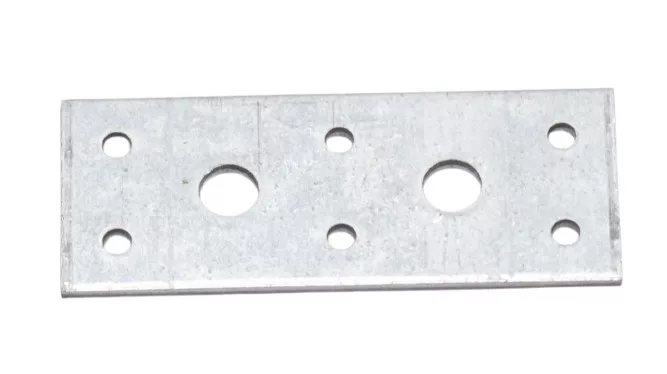 Az egyenes, horganyzott faösszekötő szegezőlemez tartós acél kötőelem fa szerkezetek összekapcsolására és hosszabbítására. Gyorsan rögzíthető szegekkel vagy csavarokkal, és kültéri, valamint beltéri felhasználásra is alkalmas.