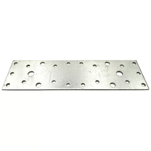 Az egyenes, horganyzott faösszekötő szegezőlemez tartós acél kötőelem fa szerkezetek összekapcsolására és hosszabbítására. Gyorsan rögzíthető szegekkel vagy csavarokkal, és kültéri, valamint beltéri felhasználásra is alkalmas.